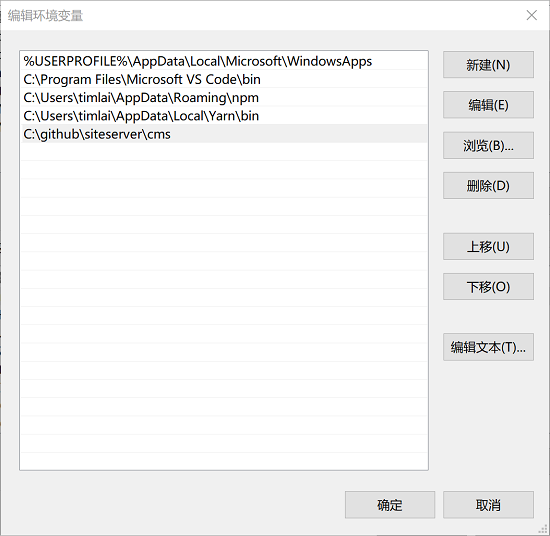 点击环境变量按钮,在弹出的对话框中编辑Path变量,添加 sscms.exe 文件所在的文件夹地址: