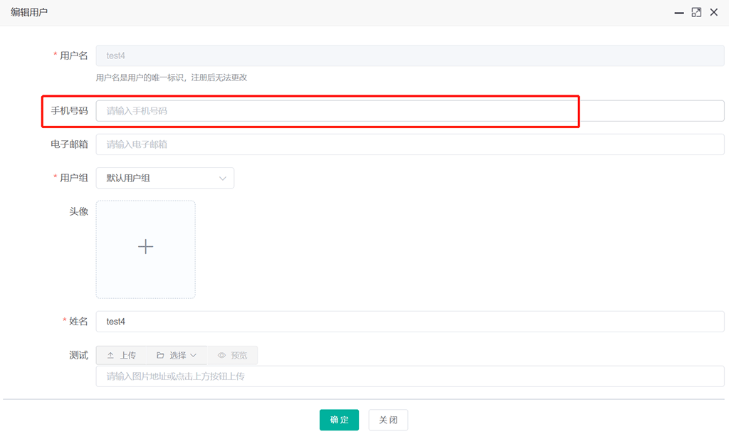 在手机号码一项填入此用户登录时需要用到的手机号码。
