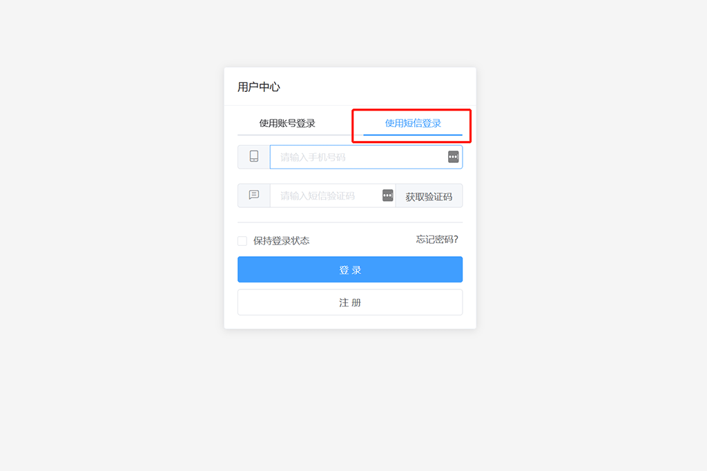 接下来,我们进入用户中心登录界面,可以看到使用短信登录选项卡: