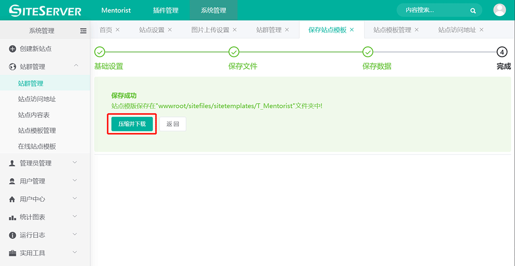 最后,我们选择压缩并下载按钮,将站点模板下载到本地: