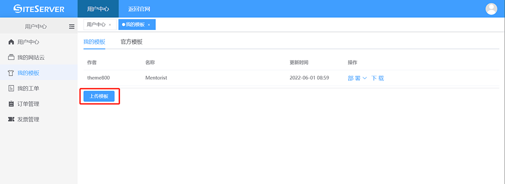 在此上传第一步保存的模板,我的模板界面将出现新上传的模板: