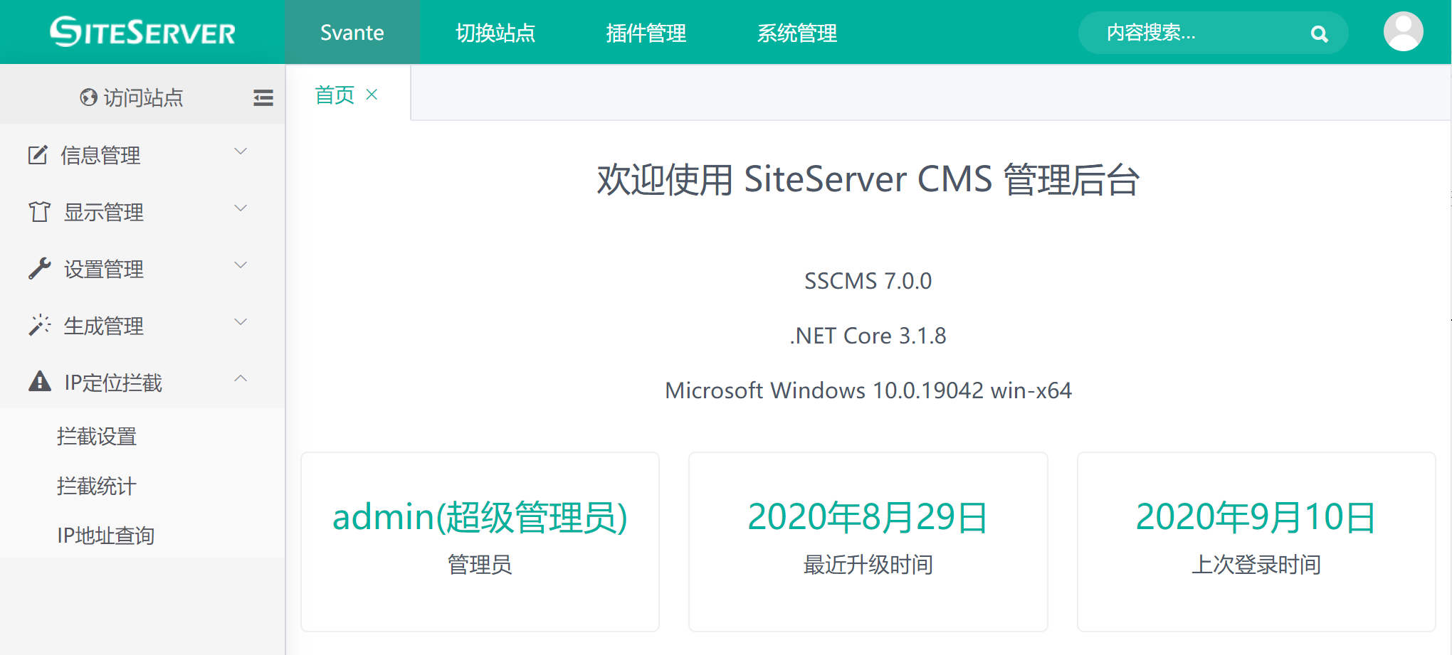 IP定位拦截插件(SSCMS.Block)能够根据来访者的IP地址阻止或允许访问前台网站页面。