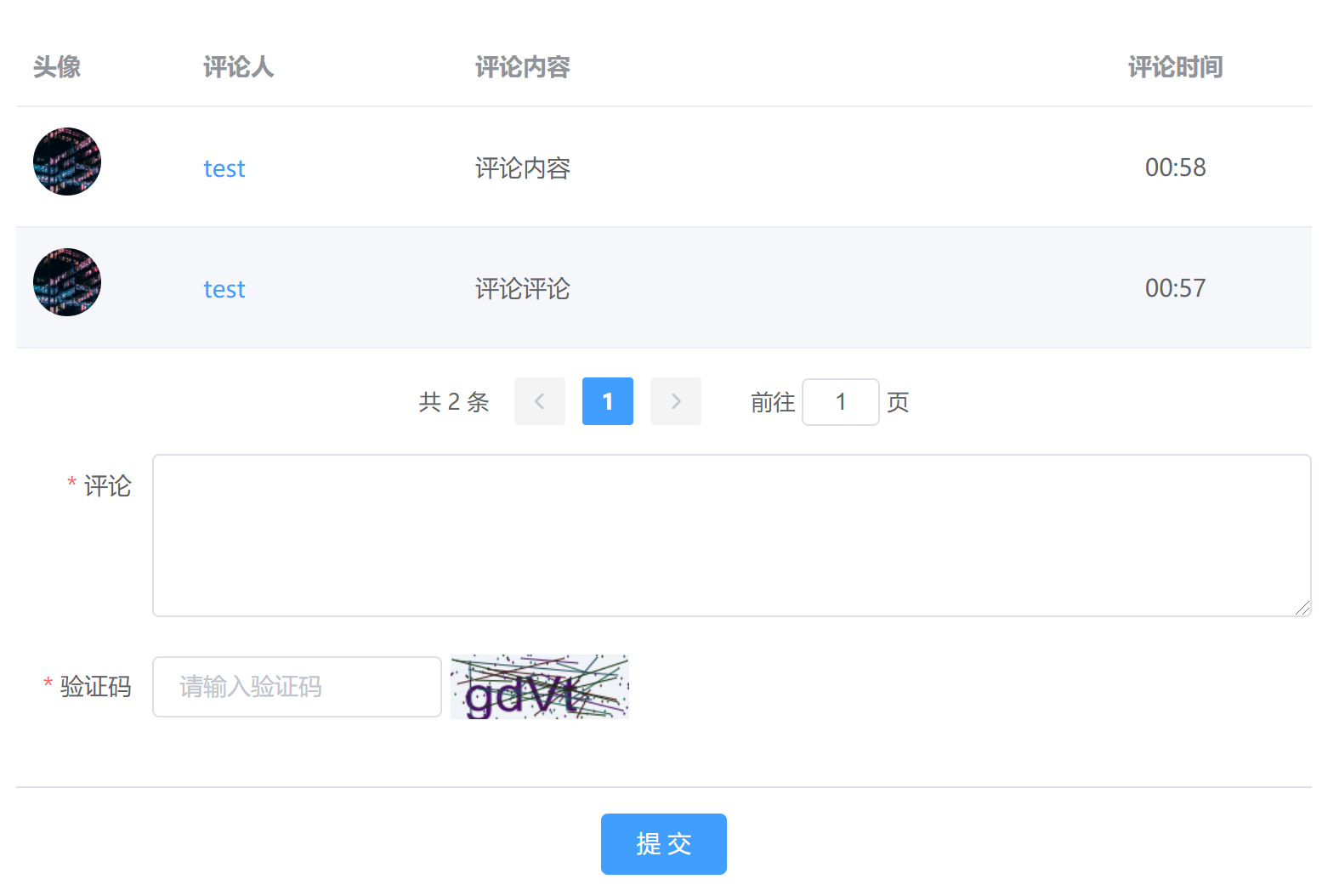 添加完成评论标签并生成内容后,前台页面将显示如下界面: