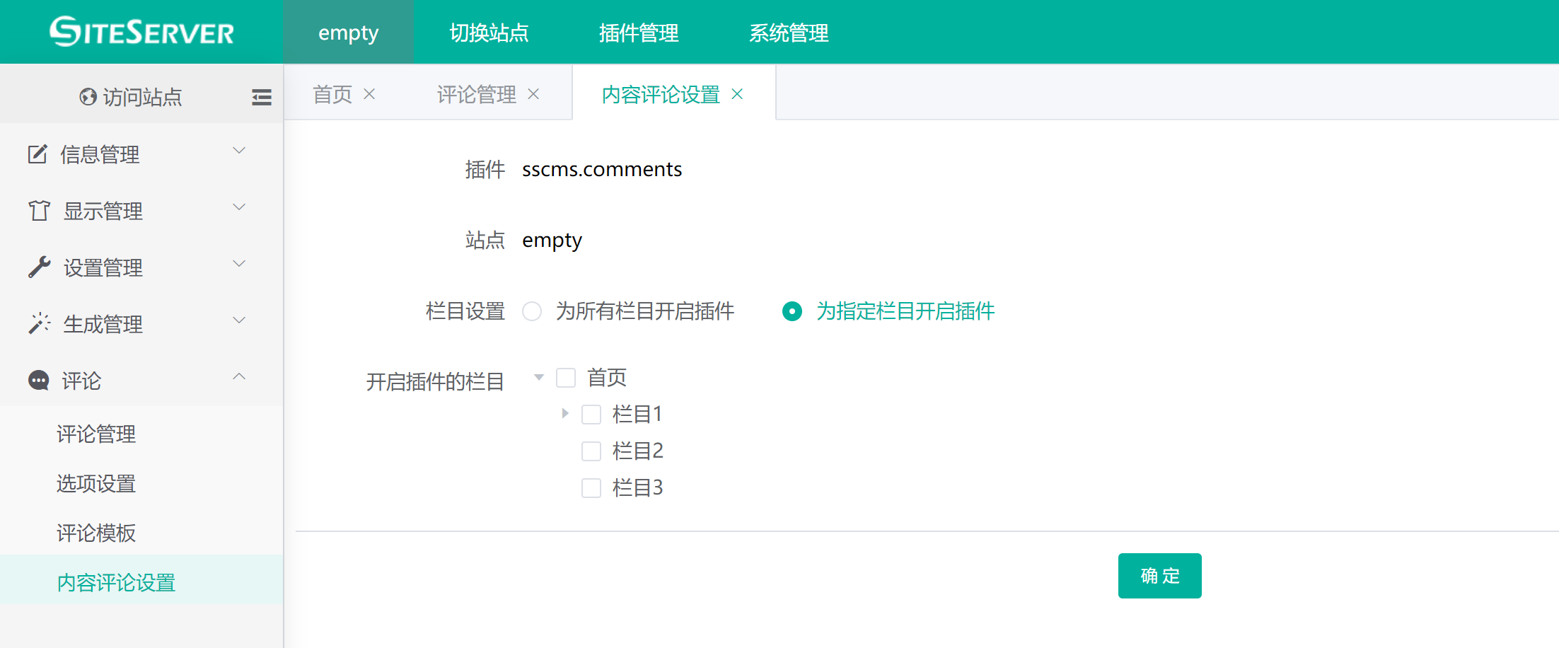 内容评论设置用于设置内容管理界面中是否显示评论管理菜单。