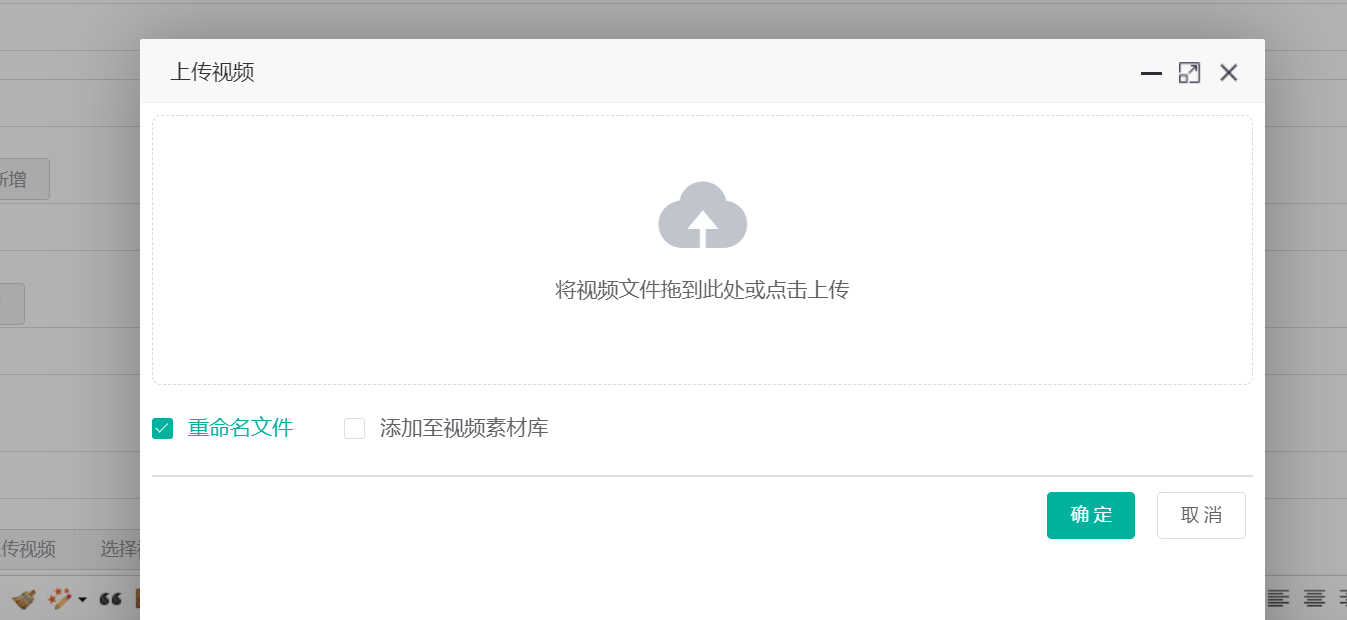 在视频字段中,点击上传按钮,系统将弹出视频上传界面: