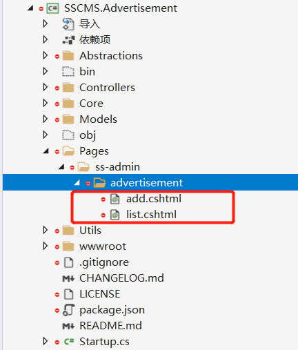 例如SSCMS V7 广告插件 (opens new window)的cshtml文件:
